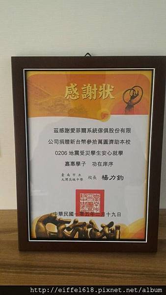 206臺南震災是人民無法抹滅的痛,本公司捐款災區兩所學校,希望減少震災對學生們的影響,幫助他們減少負擔,安心就學。